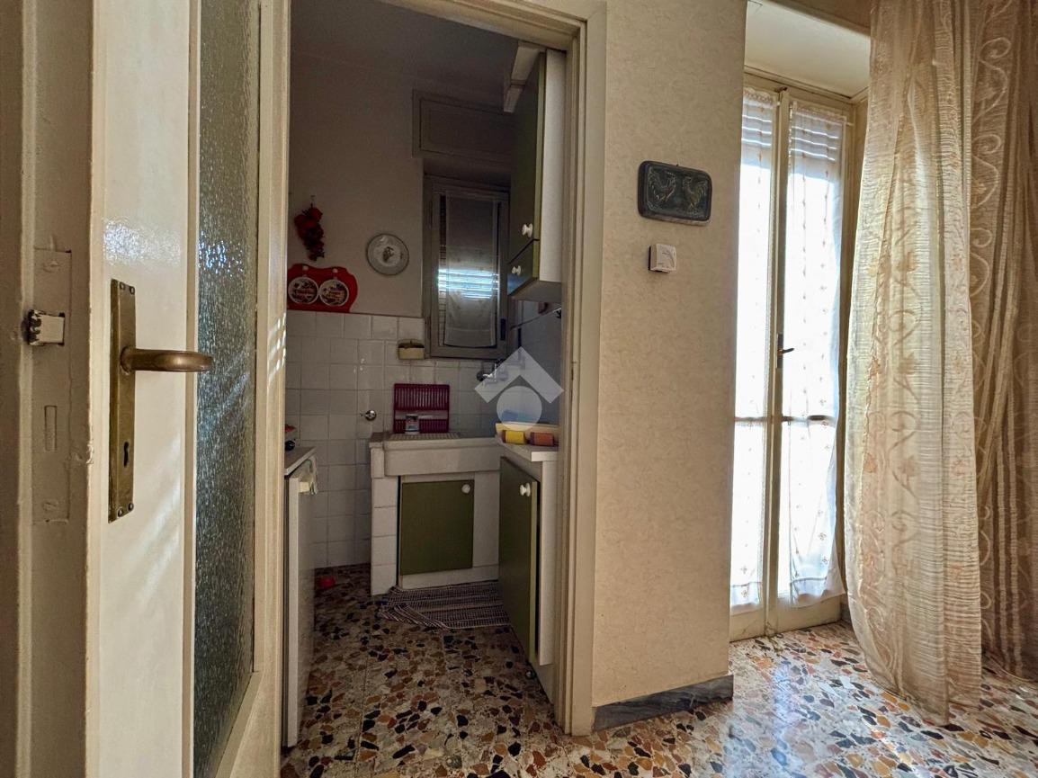 L'alloggio è in palazzina nata ad inizio anni'60, ora di fronte al supermercato Mercatò. Al piano rialzato su fronte strada affaccia su finestre, mentre sul lato cortile ha un balcone d'affaccio dal tinello. Un ampio ingresso divide gli spazi interni; il tinello ha zona cottura finestrata; la camera da letto è molto spaziosa; è presente un ripostiglio, sempre comodo, e nel interrato è di pertinenza il locale cantina. Gli interni possono essere sfruttati in maniera migliore per valorizzare gli spazi e le esigenze di ciscuno. Le spese di gestione sono comtenute.