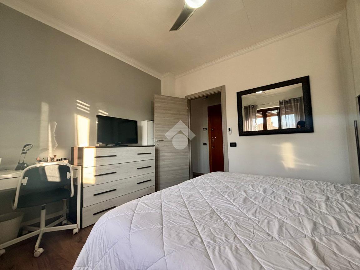 L’ingresso si apre su un ampio ambiente living, ben organizzato, dove cucina e soggiorno dialogano in modo armonioso creando uno spazio ideale sia per la vita quotidiana sia per momenti di convivialità. Dalla zona cucina si accede al balcone, un piacevole sfogo esterno che dona luce e ariosità all’ambiente.